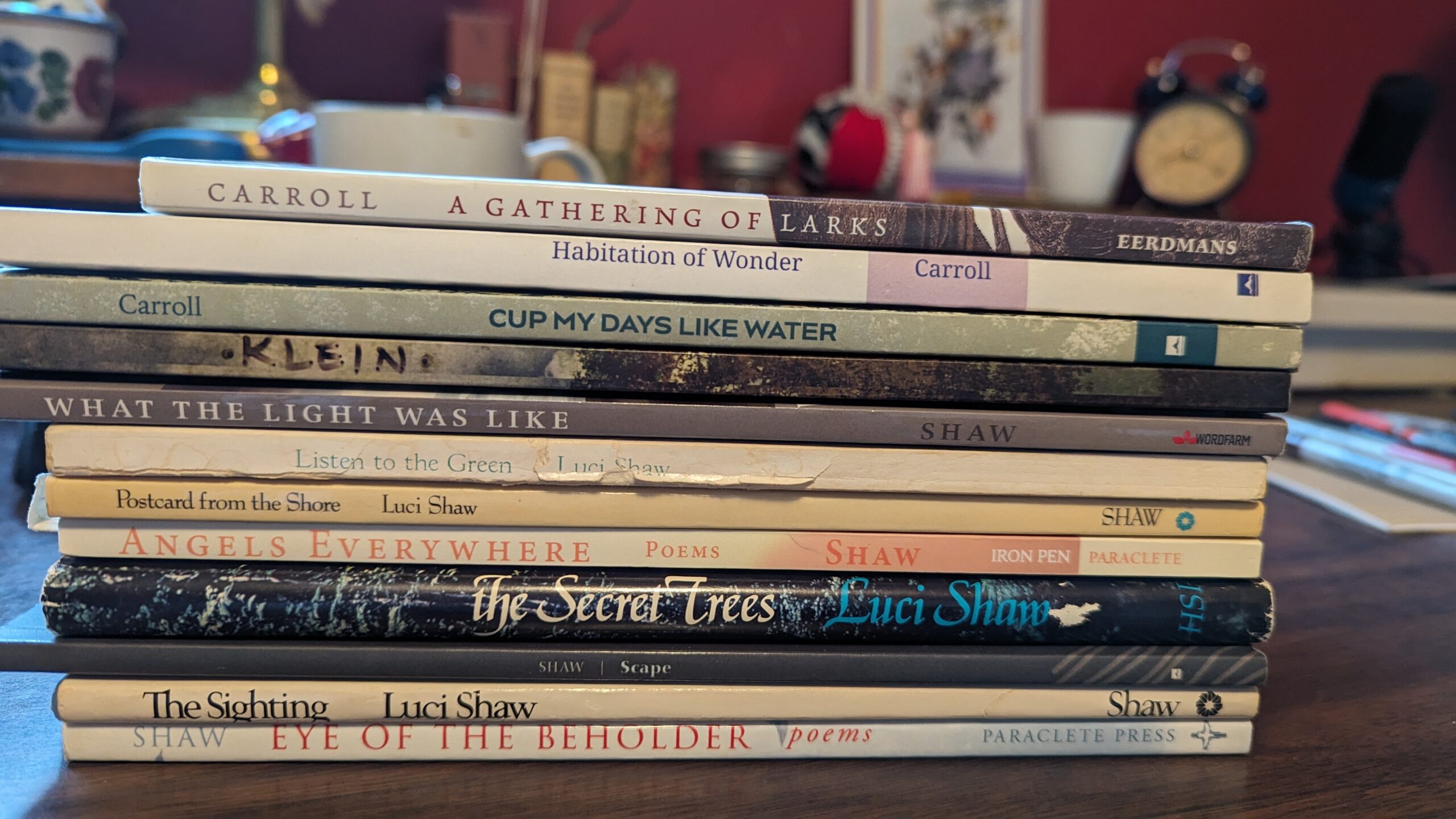I began by reading the work of other contemporary Christian poets: Tania Runyan, Luci Shaw, Malcolm Guite, and others, then buying their books, going to workshops and attending panels and readings. Each one of these writers was beyond gracious and encouraging, putting up with my newbie naiveté and questions. I was hooked.