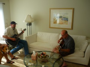 My brothers are strumming their guitars in my sister’s living room and I’m thinking of the miracle of it all, how our mother loved to sing and each of these men taught themselves to play beautiful music because of that gift and their love for words and song.