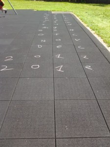 Photo of chalk drawing at school last year–the months in a vertical column–see it?