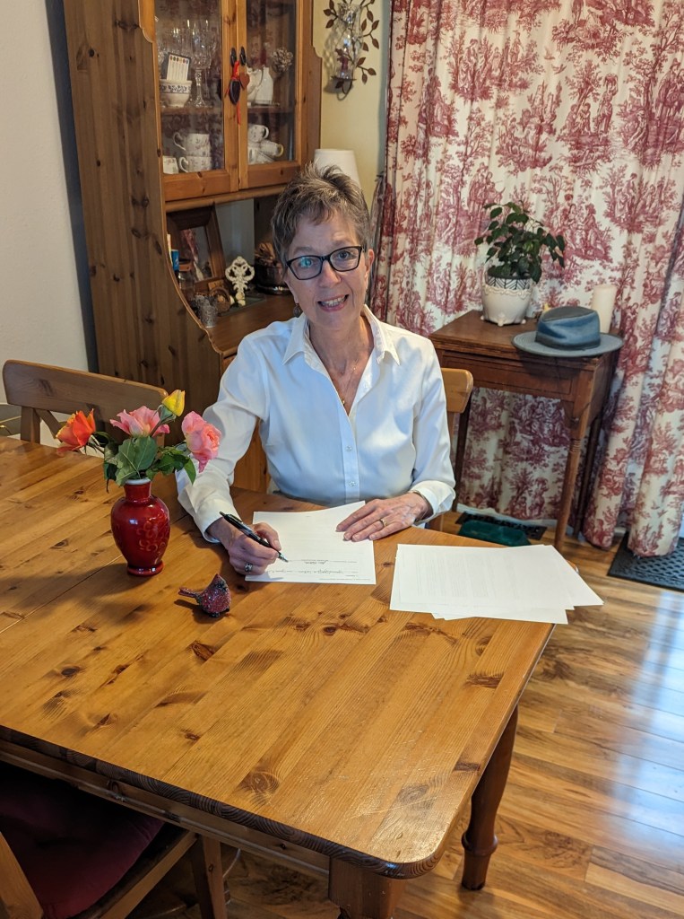 There is a lot of paperwork involved when signing a book contract. Yesterday I finally sat down to actually sign it. Woohoo! With my husband’s Indiana Jones hat in the background. Keepin’ it real, friends.